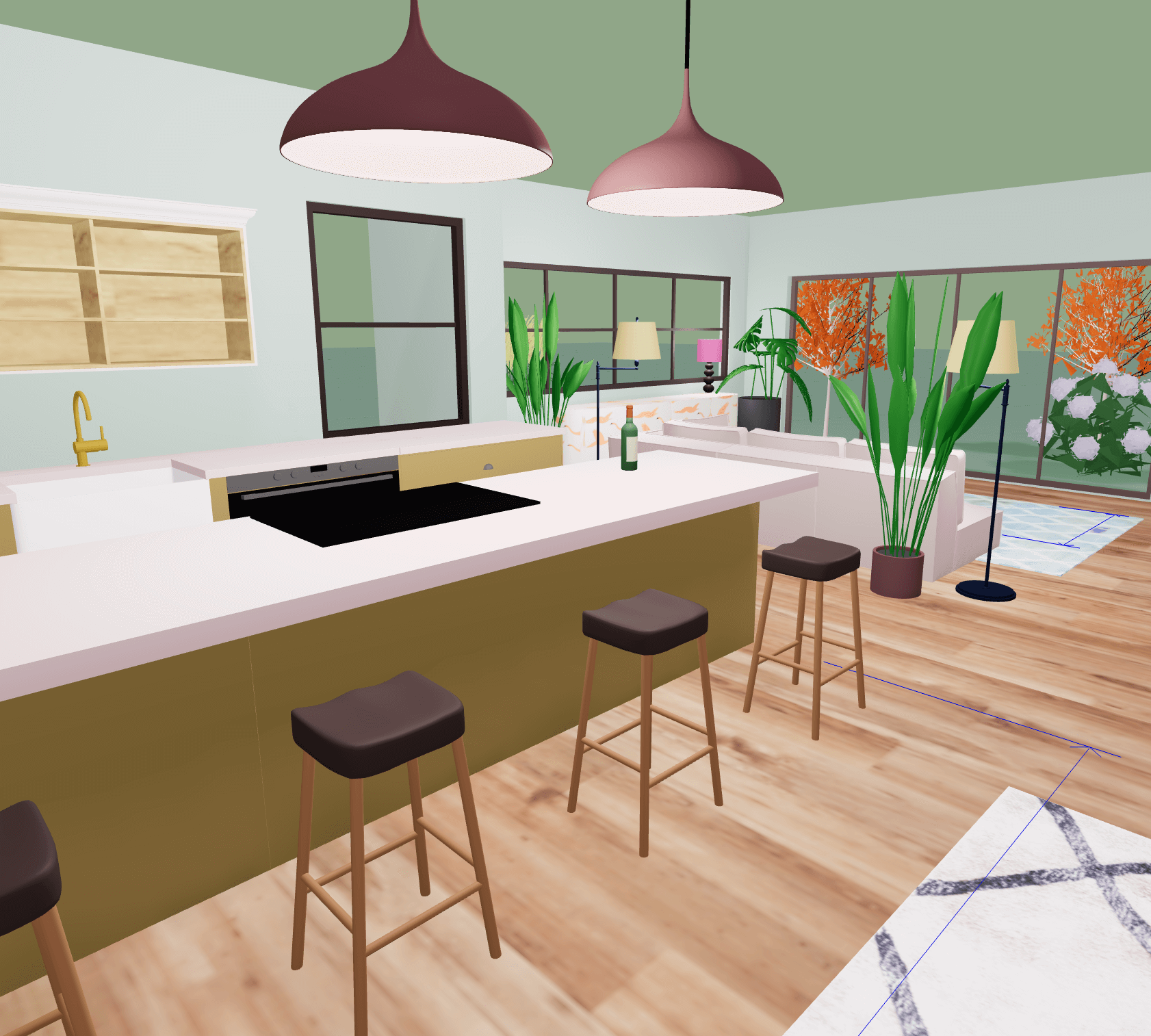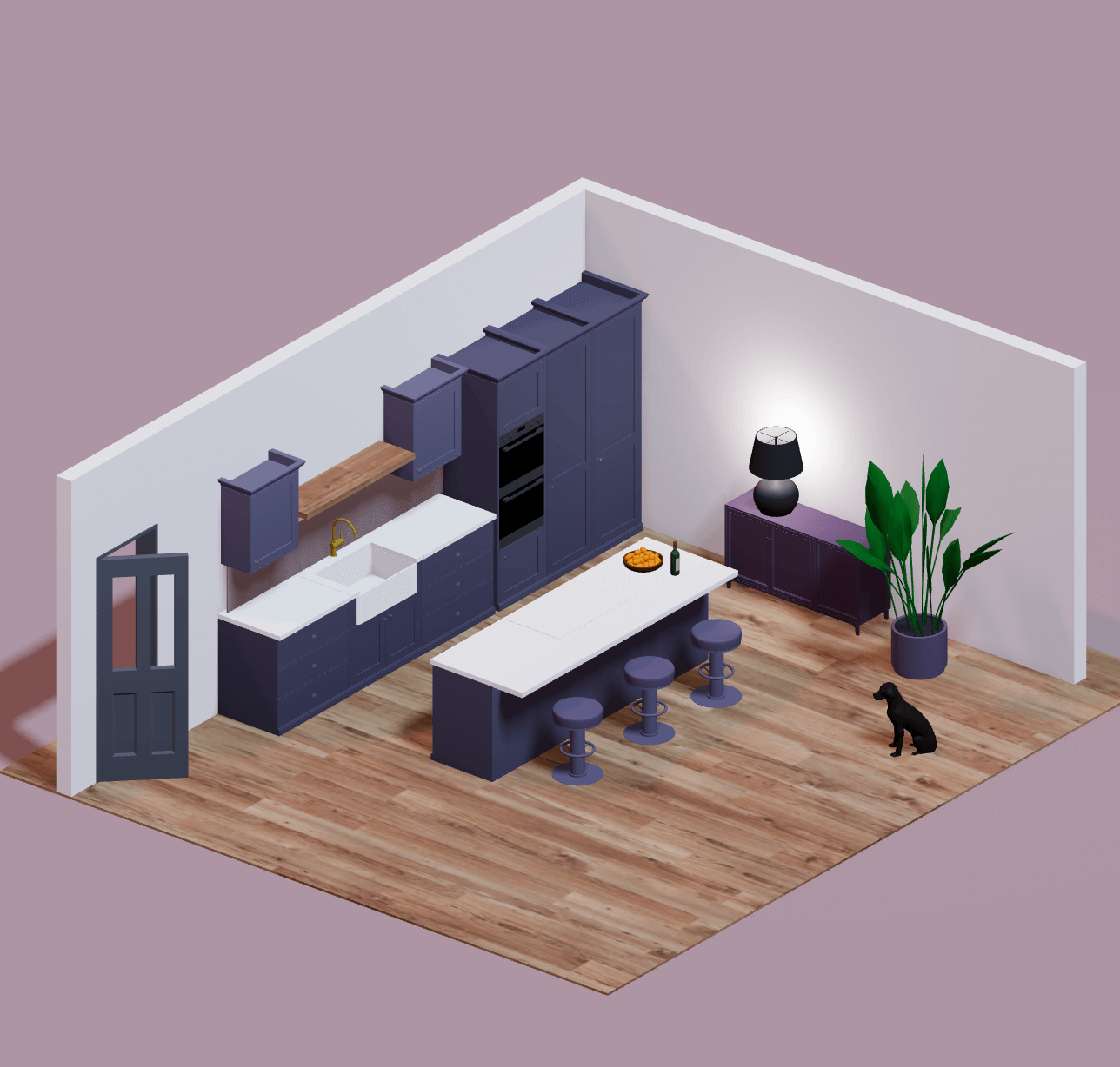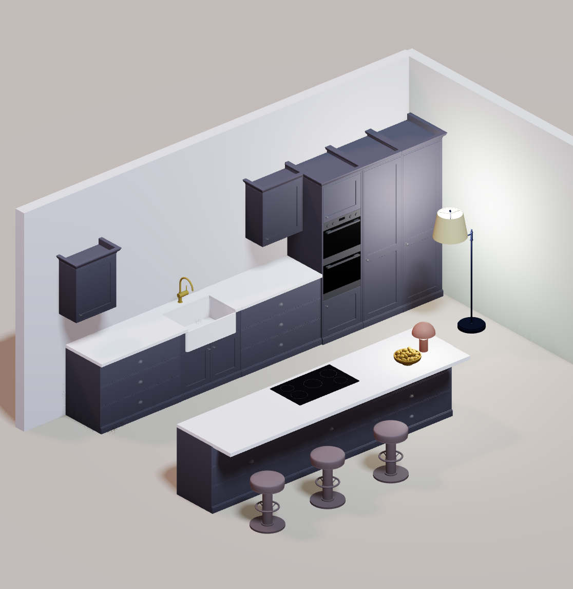 Use Arcadium's pre-built cupboard and oven units to create a kitchen layout in minutes.